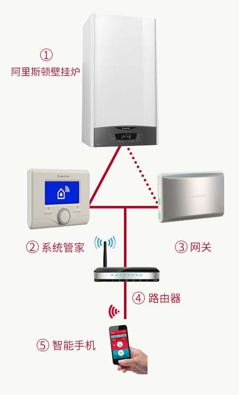 網(wǎng)關(guān)(若內(nèi)置WIFI的壁掛爐則無需網(wǎng)關(guān))通過網(wǎng)關(guān),可以讓你將你的壁掛爐接入網(wǎng)路,這樣就可以通過手機(jī)智能控制壁掛爐4